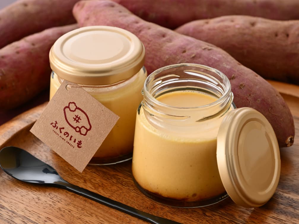 とみつ金時のペーストを生地にたっぷり練り込んだ、とろけるようななめらか食感が自慢のプリンです。